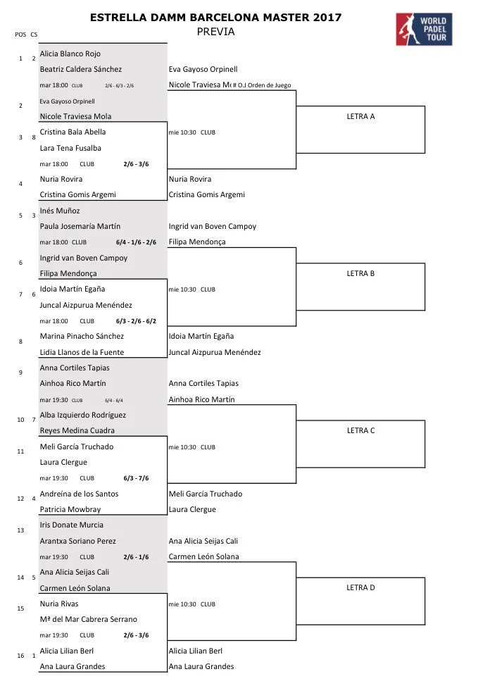 Son premier match du tableau principal ne sera pas facile puisqu’elle jouera contre sa marraine du padel Cata Tenario.