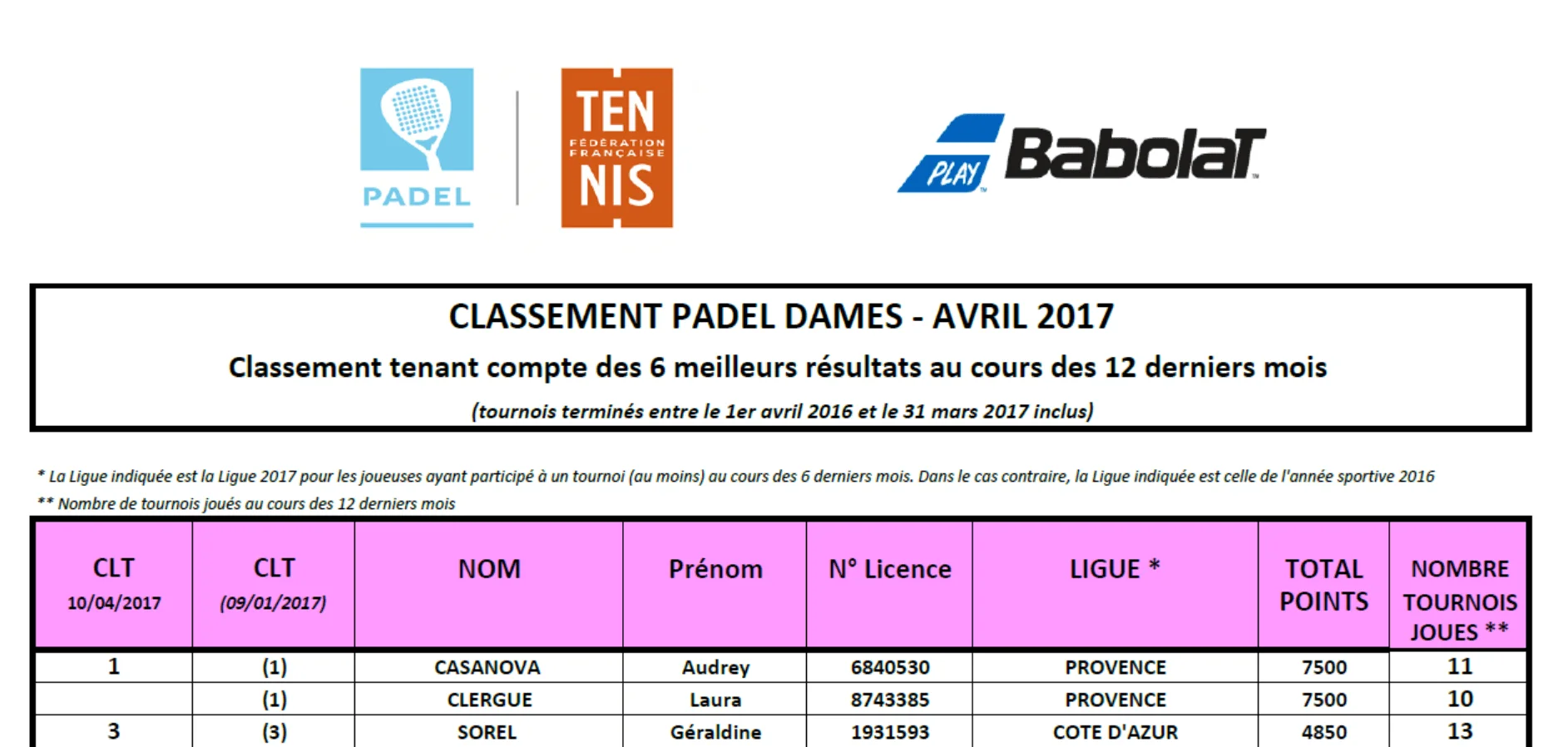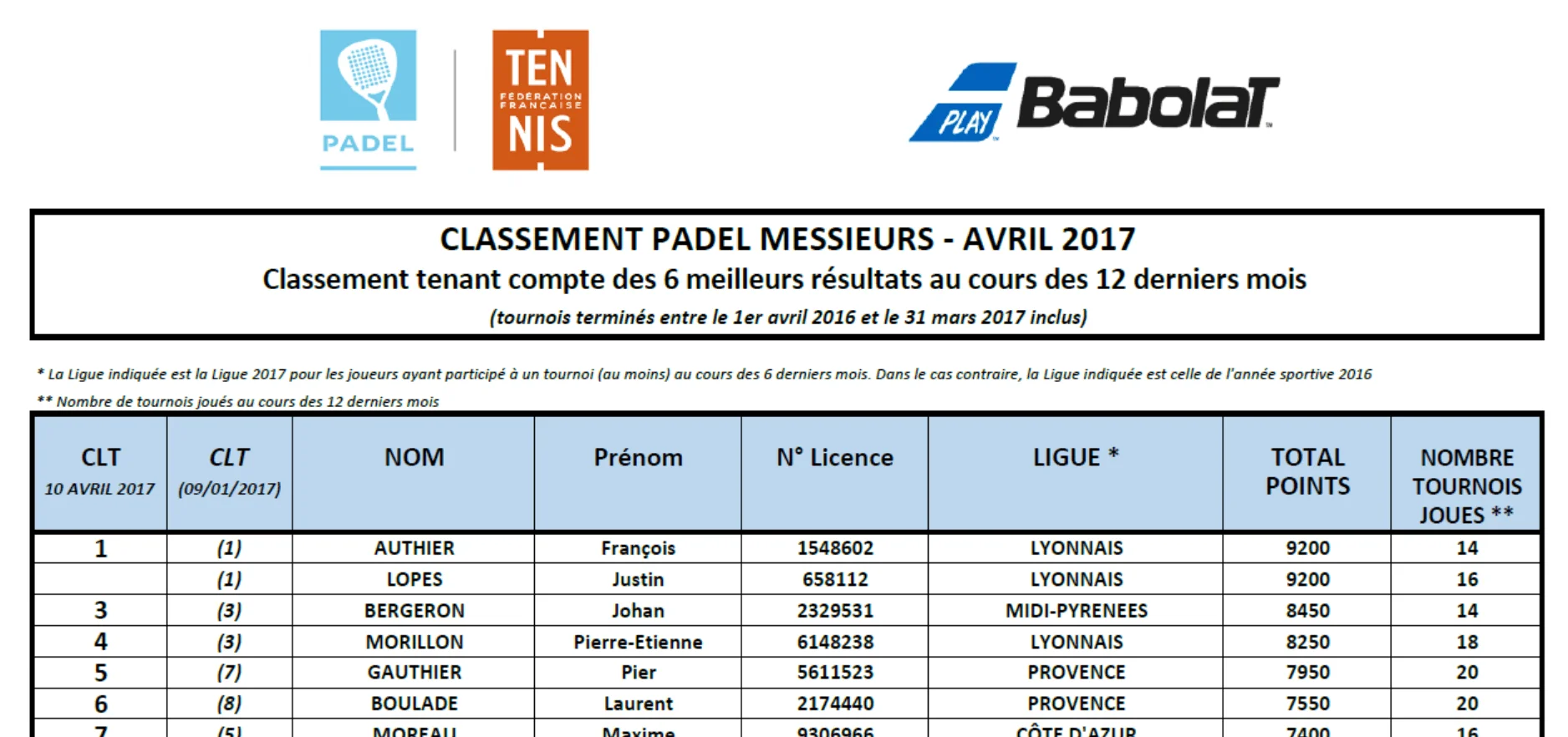 Nous passons ainsi de 1832 compétiteurs et compétitrices de Padel recensés début janvier 2017, à 2100 pour ce Classement d’avril, soit une progression de +14% en 3 mois.
