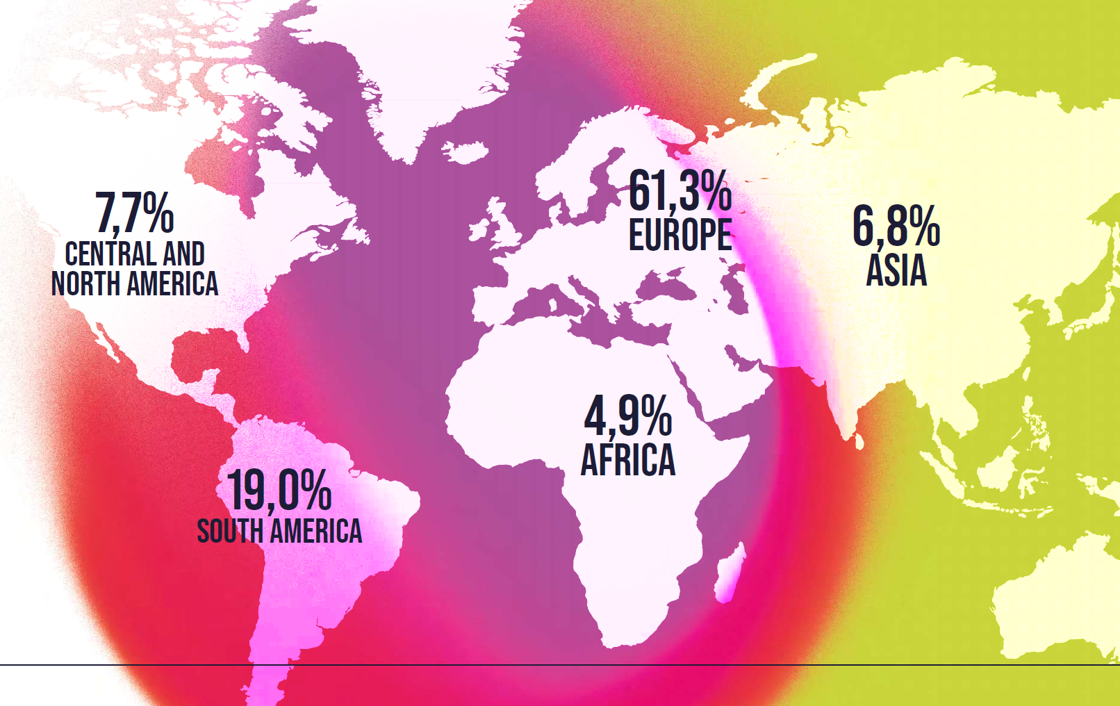 Le chiffre est désormais stabilisé : plus de 35 millions de joueurs amateurs pratiquent le padel dans le monde. Parmi eux, plus de la moitié jouent au moins une fois par semaine, ce qui confirme un usage régulier et non plus occasionnel. L’Europe reste le cœur du padel mondial avec 61,3 % des pratiquants, devant l’Amérique du Sud (19 %), l’Amérique centrale et du Nord (7,7 %), l’Asie (6,8 %), l’Afrique (4,9 %), tandis que l’Océanie reste marginale.