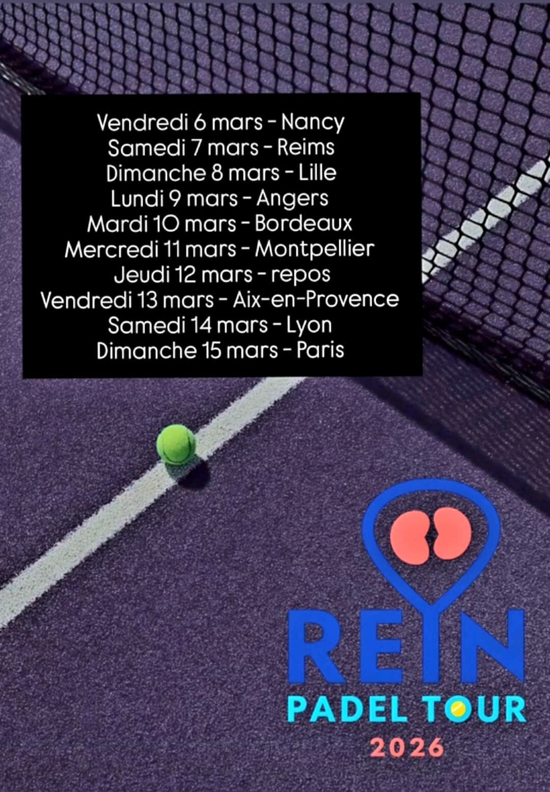 Du 6 au 15 mars 2026, la France vibrera au rythme du Rein Padel Tour, une tournée nationale solidaire portée par Antoine, atteint de la maladie de Berger (néphropathie à IgA), une pathologie rénale chronique encore trop méconnue.