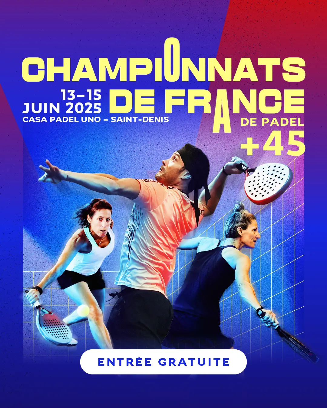 Le rendez-vous est donné : du vendredi à dimanche, Casa Padel Uno à Saint-Denis accueillera les Championnats de France +45 ans par paires 2025, réunissant les meilleures équipes hommes et femmes de la catégorie.