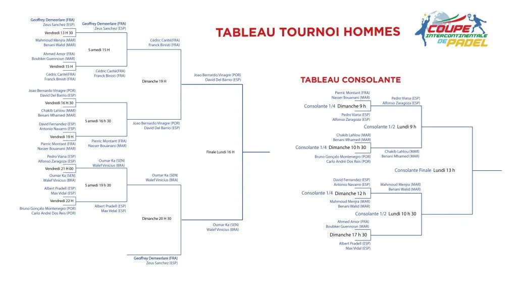 - 9h et 10h30 : Les demi-finales consolantes messieurs