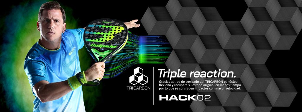 La pala de Paquito Navarro pour 2020. Une nouvelle forme pour cette pala qui était en forme de diamant. En 2020, la Hack 02 sera de forme hybride pour répondre à toutes les phases de jeu. Pour accentuer son efficacité, cette pala reçoit le Tricarbon, trois couches de carbone tressées dans trois directions pour permettre une meilleure frappe, une meilleure précision et une meilleure récupération après impact.