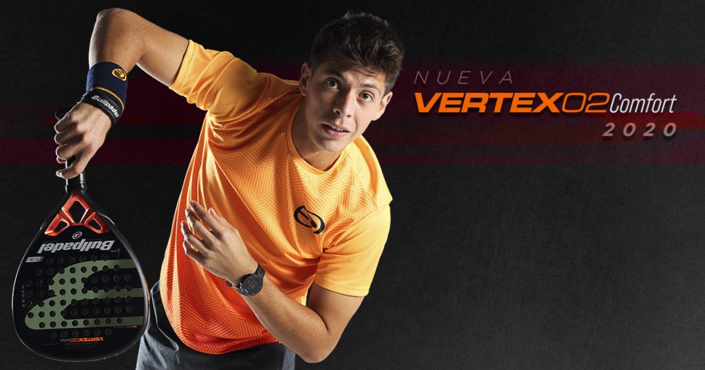 C’est une nouvelle pala de chez Bullpadel. Une nouvelle pala de la gamme Pro-line. Une Vertex de plus, pour Juan Tello en 2020. Cette 02 Comfort est différente de la Vertex “normale” surtout par sa surface lisse, puis par le Fibrix, ce mélange de fibre de carbone et fibre de verre sur la surface de frappe.