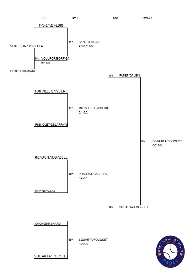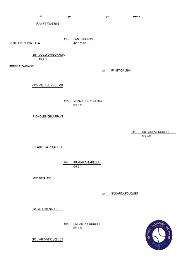 - Tc Mouans Sartoux organisait un P500 hommes remporté par Squarta/Fouquet face à Fanet/Dalbin.