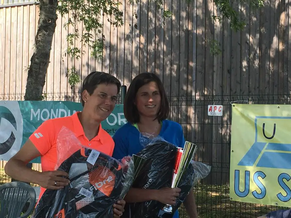 Chez les dames, vainqueurs Emilie Thauvin (US Orléans) et Aurélie Le Jossec (TC Bourges) contre Fanny Malassigné (AS Monts) et Sabrina Léger (ATG Tours).