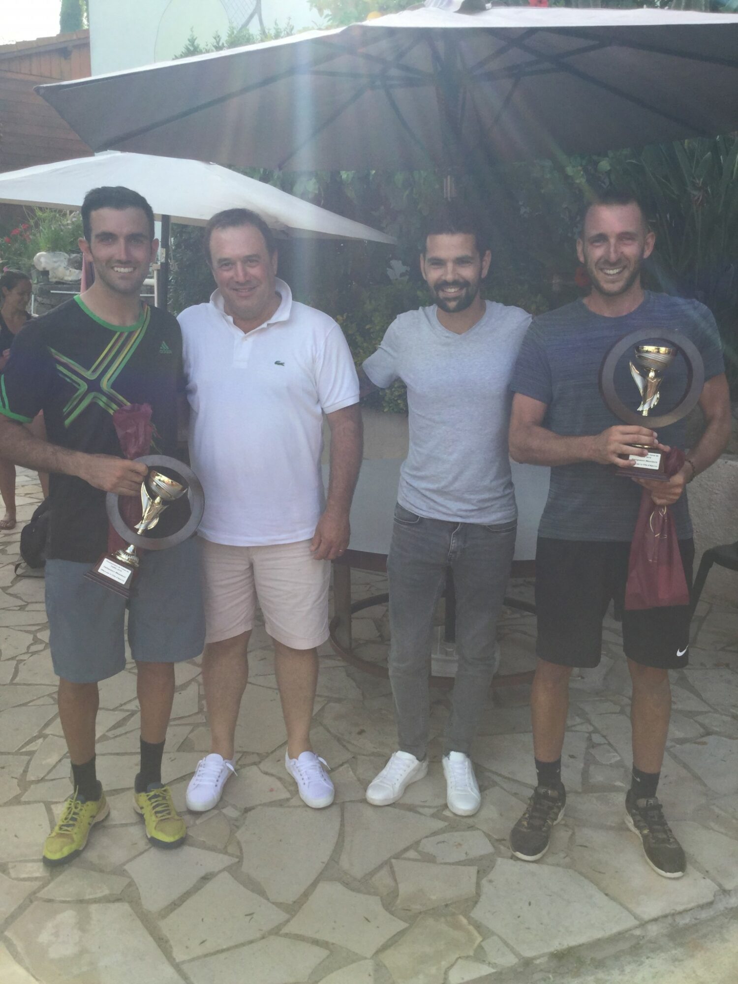 - La ligue Corse voit la victoire côté dames de Line Meites et Laurène Bérard sur Magali Lenain et Sandra Fontan sur le score de 6/0 6/2. Chez les messieurs, victoire de Marc Antoine Sola et Gilles Ponzevera sur Lilian Prod’homme et Baptiste Borelli 4/6 7/6 6/4. Les prix ont été remis par Philippe Medori, président de la ligue Corse de tennis et Anthony Zaru, secrétaire général.