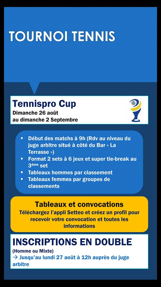 Pour ceux qui veulent encore s’inscrire au P250 et P100 : inscriptions possibles jusqu’à dimanche soir. Contact : emootz@tennispro.fr