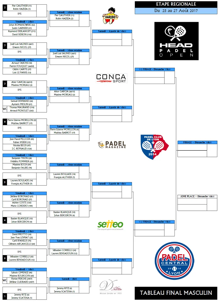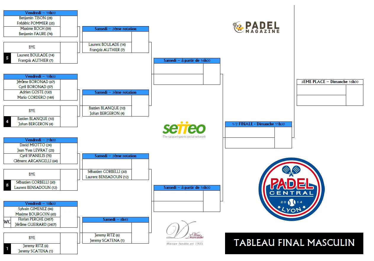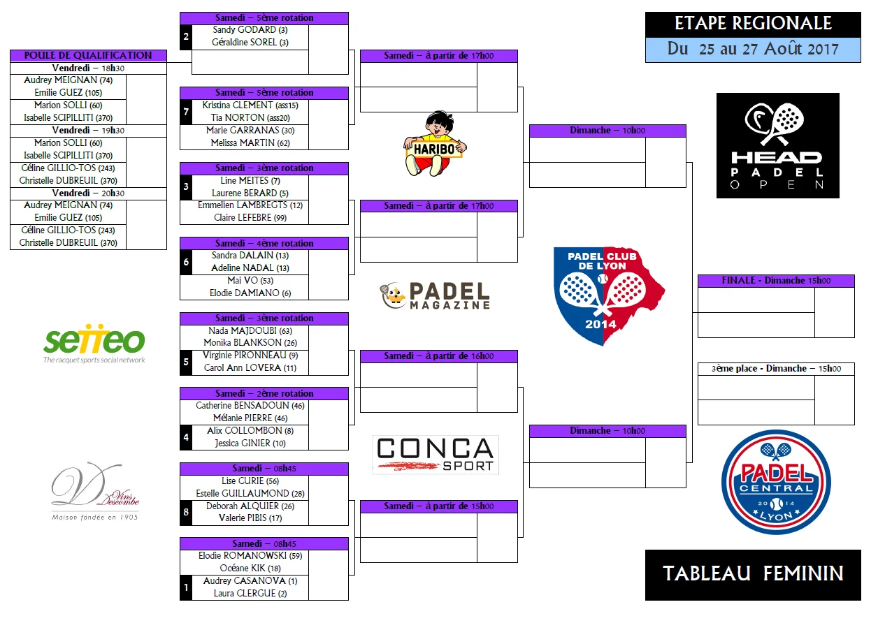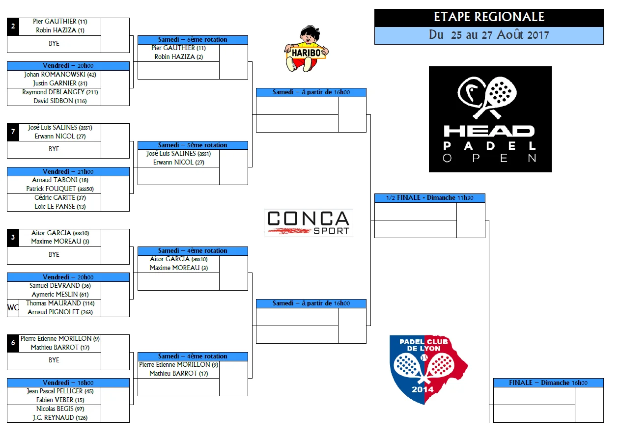 Voici les tableaux du Week-end du Head Padel Open du Padel Club de Lyon.
