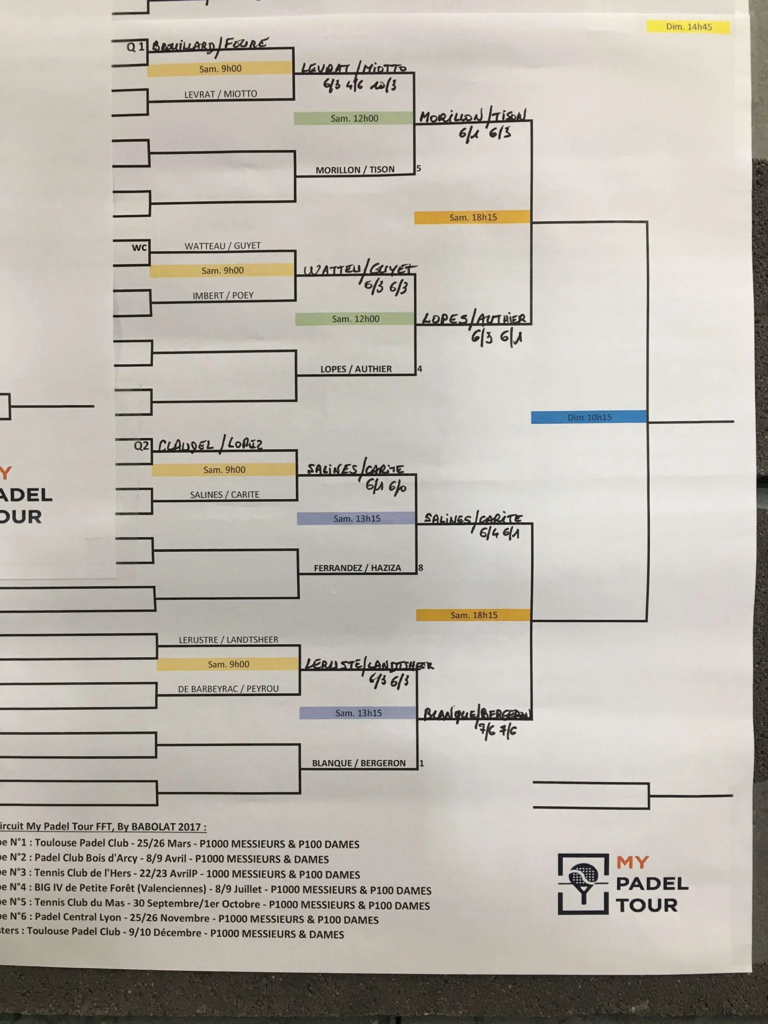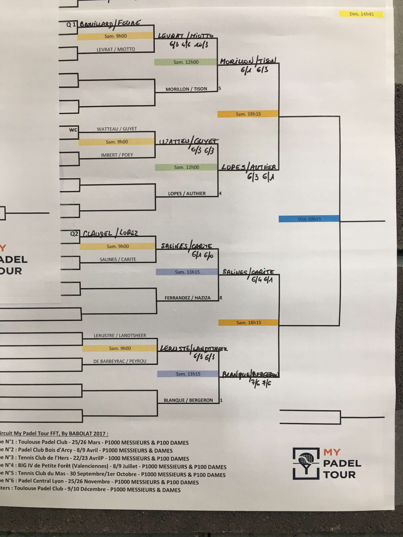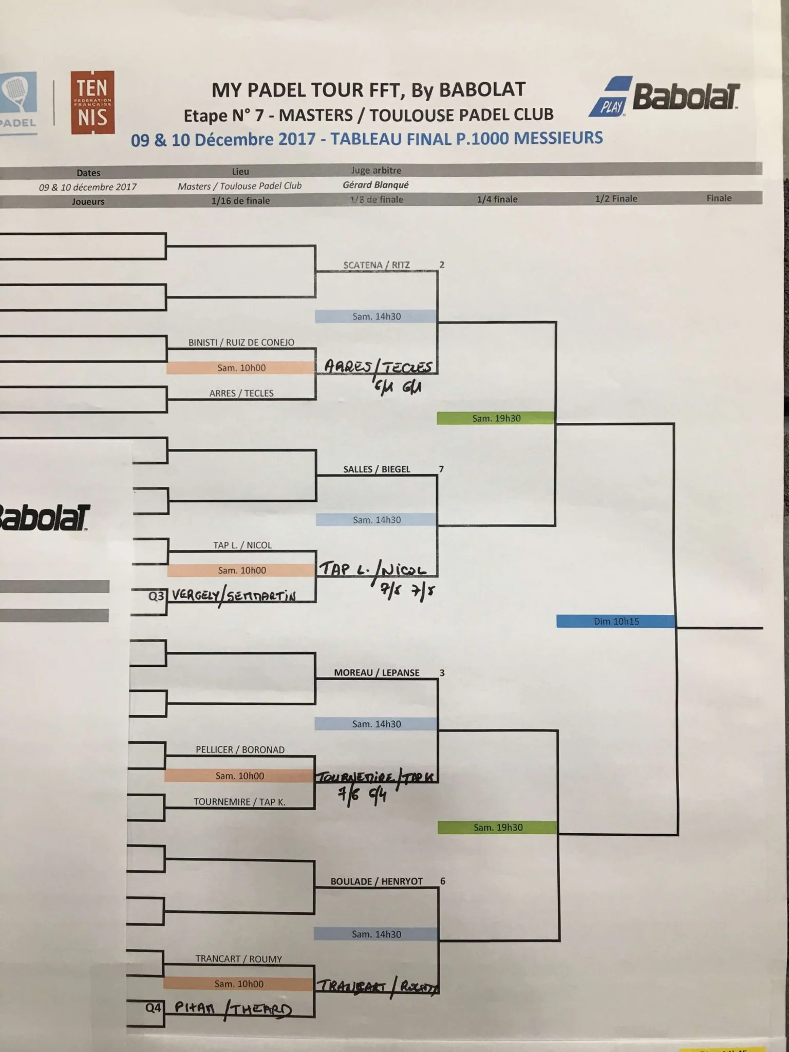 L’autre très gros match était la paire Haziza / Ferrandez opposait à Carité / Salines. Un match presque à sens unique. On espérait une confrontation plus serrée, mais on a vu du très grand Jose Luis Salines qui a surpris par sa combativité et son corps athlétique. A gauche, Cédric Carité, toujours aussi sérieux et régulier a tenu la baraque. La paire franco-espagnole l’emporte 6/4 6/1. Attention, à cette paire, elle fait office de favorite avec les champions de France dans cette compétition.