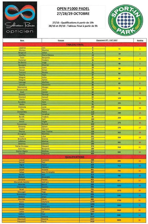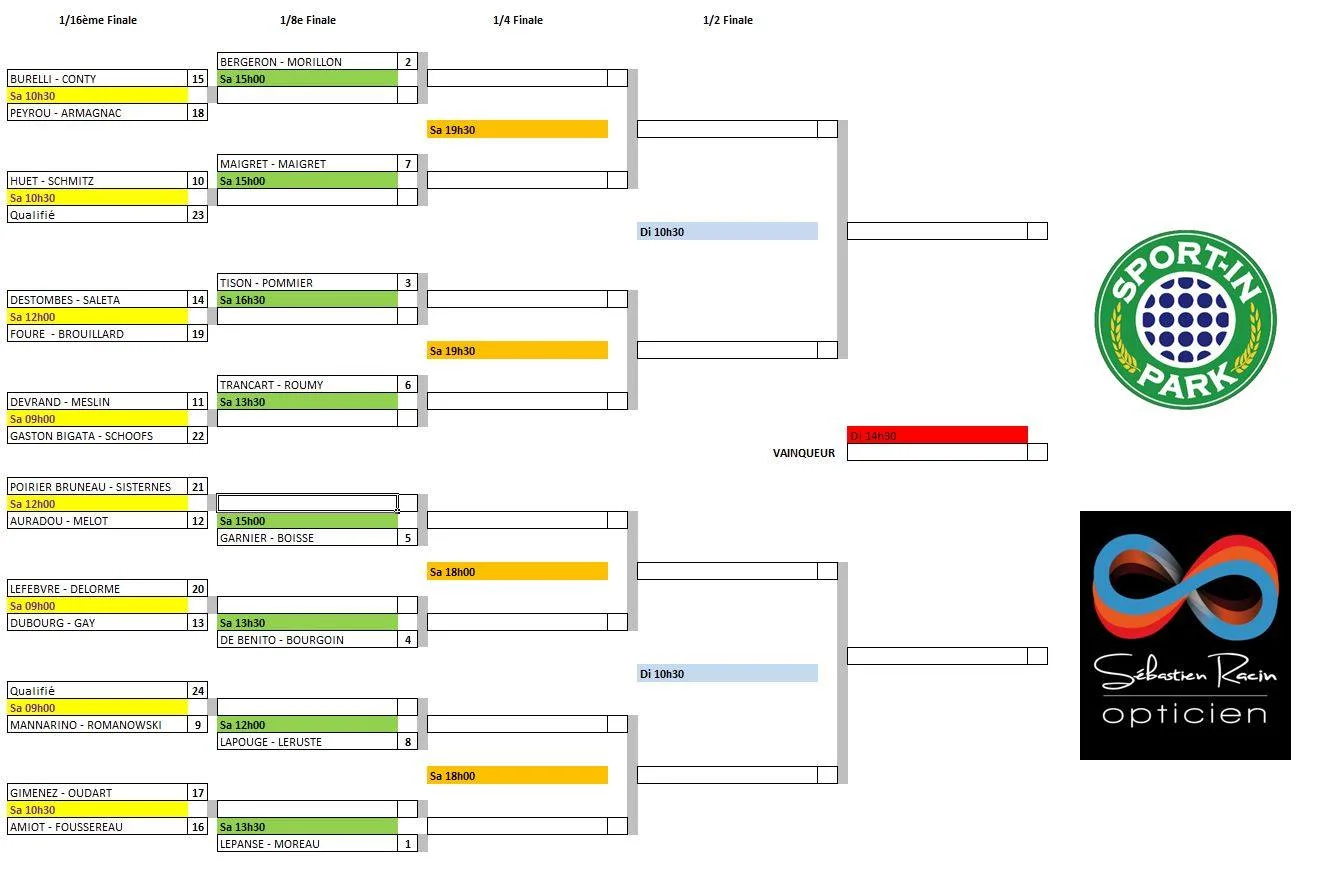 Le 1er open de Sébastien Racin à Sport in Park arrive à grand pas. Voici la mise à jour des tableaux.