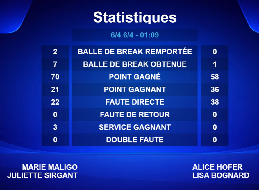 Au final, ce sont Maligo / Sirgant qui s’imposent 6/4 6/4, dans une rencontre où chaque détail a compté.