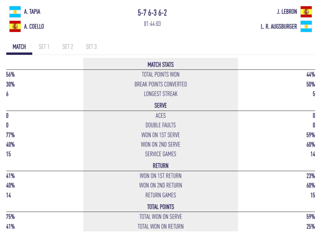 Le début de rencontre est d’un très haut niveau. Tapia et Coello entrent bien dans leur match, se procurent des balles de break d’entrée… sans les convertir.