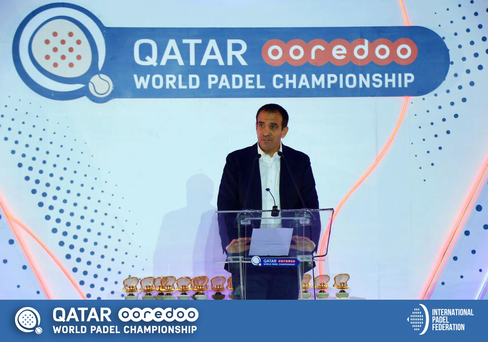Nasser Al-Khelaïfi, le Président de la Fédération Qatarie de Tennis (et de padel donc), Tarek Zainal, le directeur du tournoi et le président de la Fédération Internationale de padel Luigi Carraro étaient également là pour présenter et lancer le 15e mondial de padel sous l’ère de la FIP.