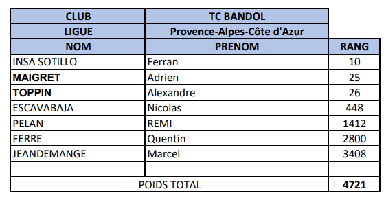 Malgré la présence de deux très gros joueurs dans ses rangs, le TC Bandol a sans doute payé un manque de profondeur d’effectif. Derrière ces leaders, l’équipe alignait des joueurs au-delà du top 1000 français, ce qui en faisait l’équipe au poids de classement le plus élevé de cette Nationale 2. Un déséquilibre qui a probablement pesé face à des formations plus homogènes sur l’ensemble de leurs trois paires.