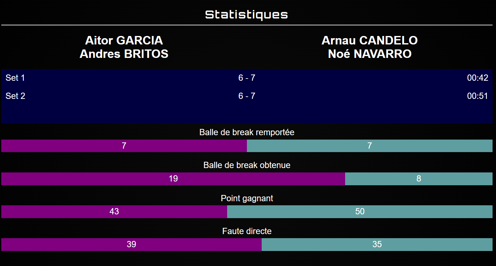 19 balles de break obtenues pour Britos / Garcia, 7 converties contre 8 pour la TS2 dont 7 converties
