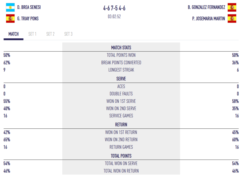 En face, Triay / Brea ont été très efficaces (6 breaks sur 8 opportunités), mais pas toujours au bon moment.