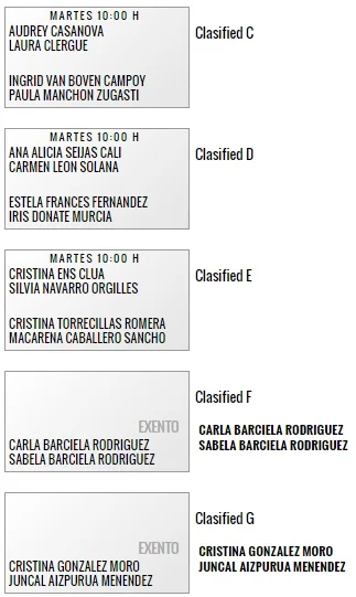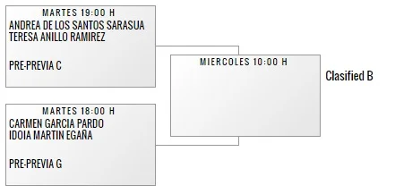 Laura Clergue et Audrey Casanova rencontreront, Mardi 4 mai à 10h00 au même endroit que les garçons, Ingrid Van Boven Campoy/Paula Manchon Zugasti (120ème joueuse mondiale). La première nommée fait partie de l’équipe championne d’Espagne par équipes en titre. La seconde, native de Barcelone et agée de 16 ans fait partie des grands espoirs du padel Féminin Espagnol. En cas de passage en seconde phase, ce serait pour y affronter Andrea De Los Santos Sarasua/Teresa Anillo Ramirez (paire N°27 mondiale) avec comme récompense suprême au bout des qualifications, un premier tour du tableau principal contre Catalina Tenorio/Victoria Iglesias paire N°5 mondiale.