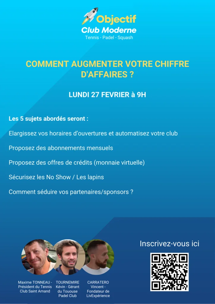 - Kévin TOURNEMIRE, le gérant du plus grand club de padel indoor en France (Toulouse Padel Club) va nous parler de la problématique “No Show”.