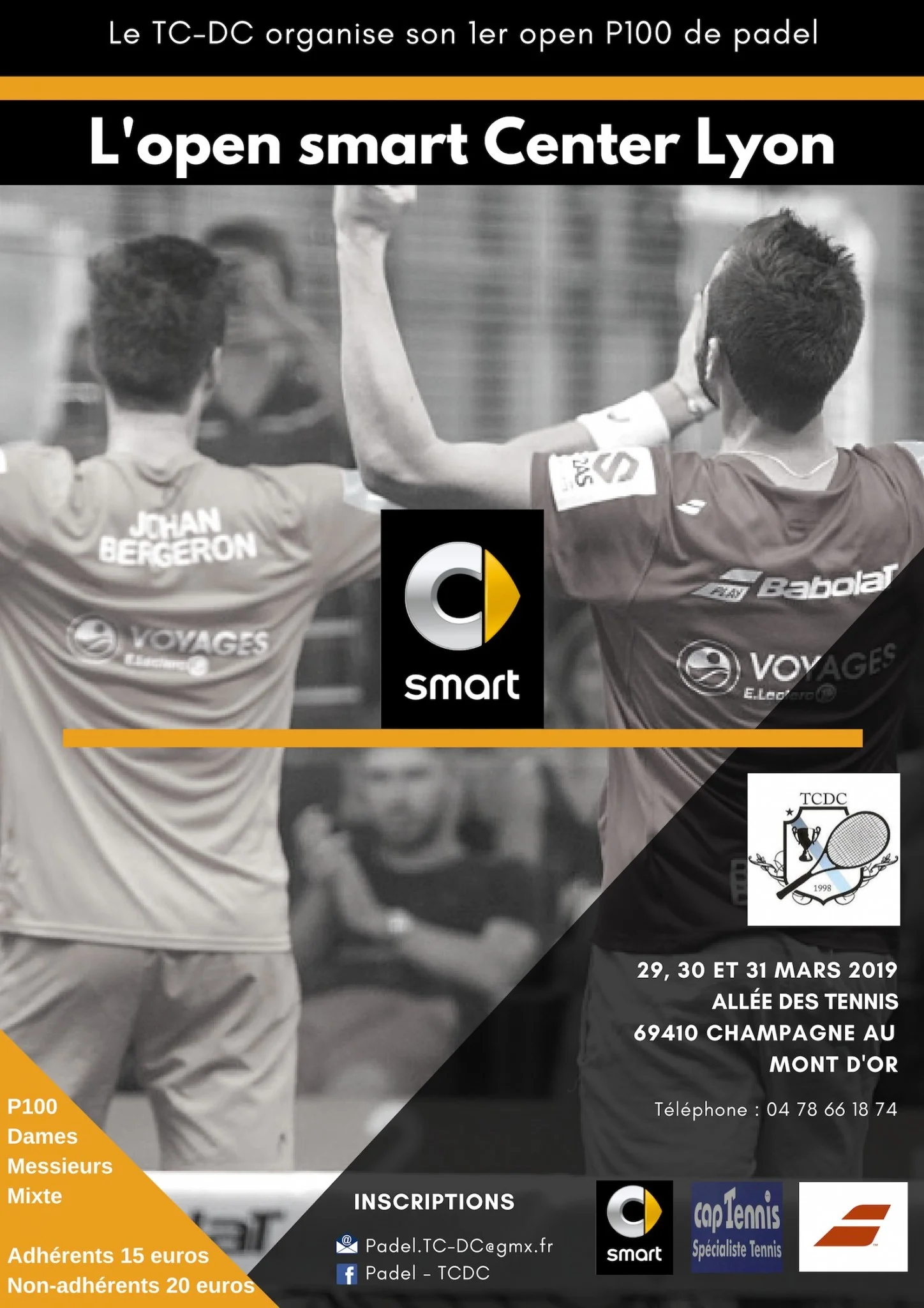 Du 29 au 31 mars, Le Tennis Club de Dardilly Champagne organisera son premier 1er Open P100 de padel en dames, mixtes et messieurs. Il s’agira de l’Open Smart Center Lyon.