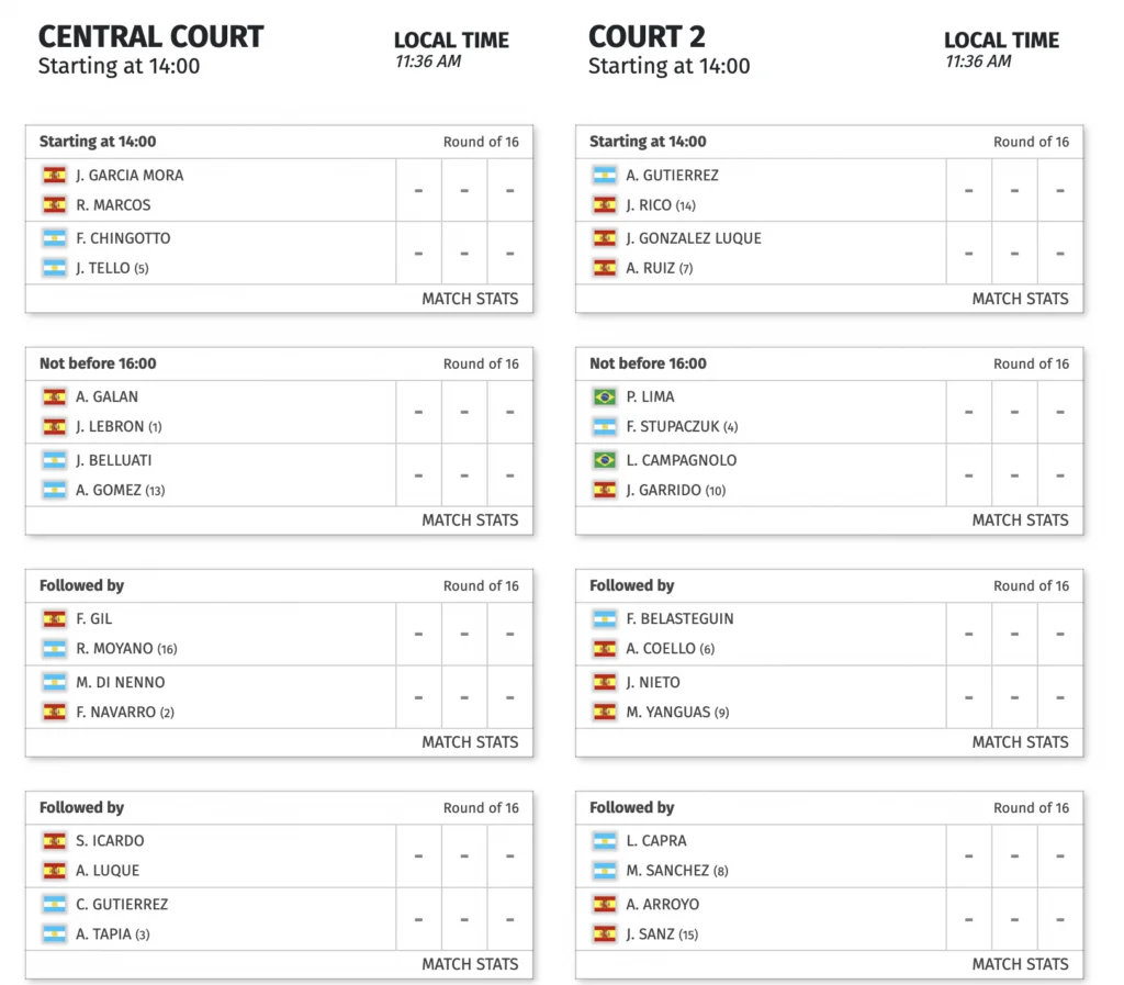 Pablo Lima et Franco Stupazcuk vont sans doute devoir batailler face à Campagnolo/Garrido à partir de 16h. Javi Garrido a de nombreux fans à Madrid, et le facteur public pourrait avoir un effet sur le résultat.