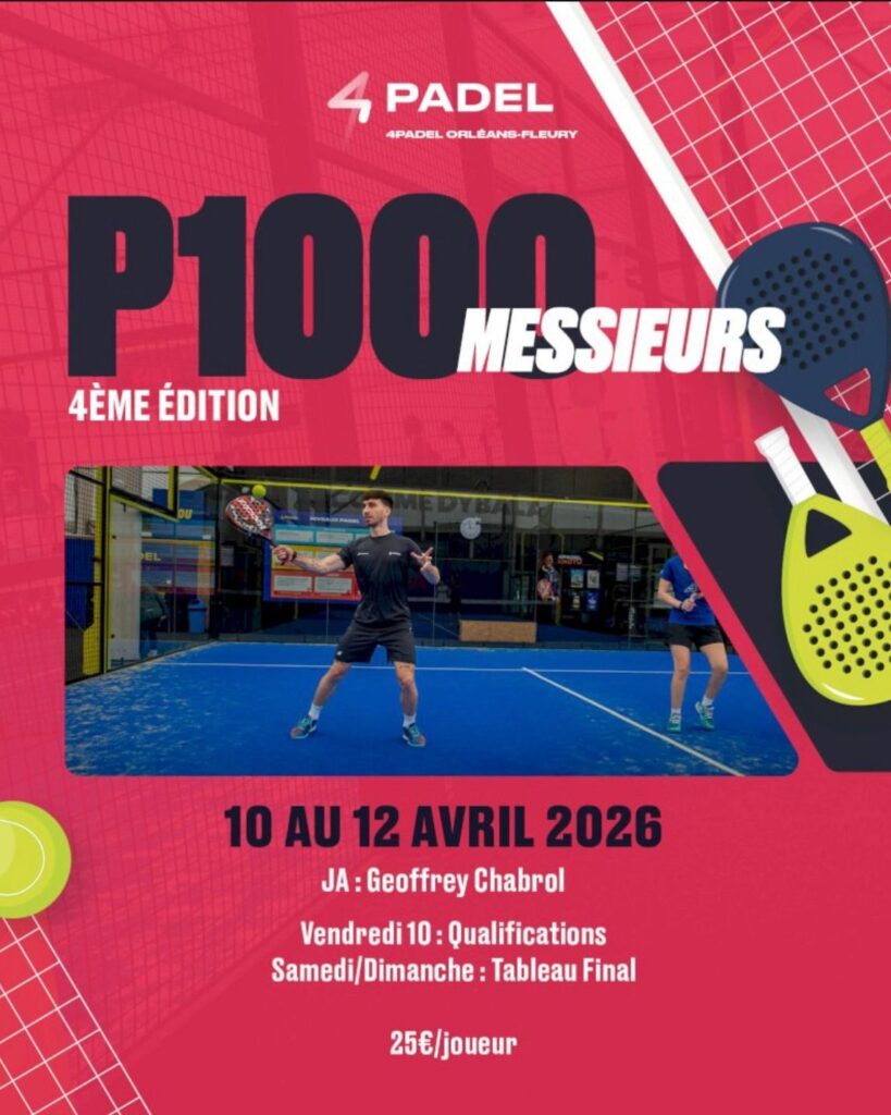 Le 4Padel Orléans Fleury organise un P1000 messieurs du 10 au 12 avril. Suivez toutes les mises à jour du tournoi en temps réel sur cette page dédiée et régulièrement actualisée.