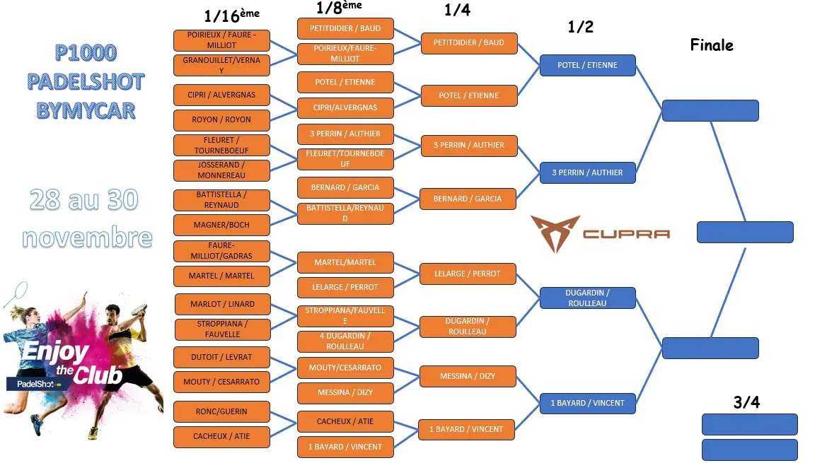 PadelShot Lyon proposera un P1000 relevé, avec un plateau dense et plusieurs paires habituées à ce niveau de compétition. Une question sera au centre de l’attention : qui pourra faire tomber les locaux Vincent / Bayard ?