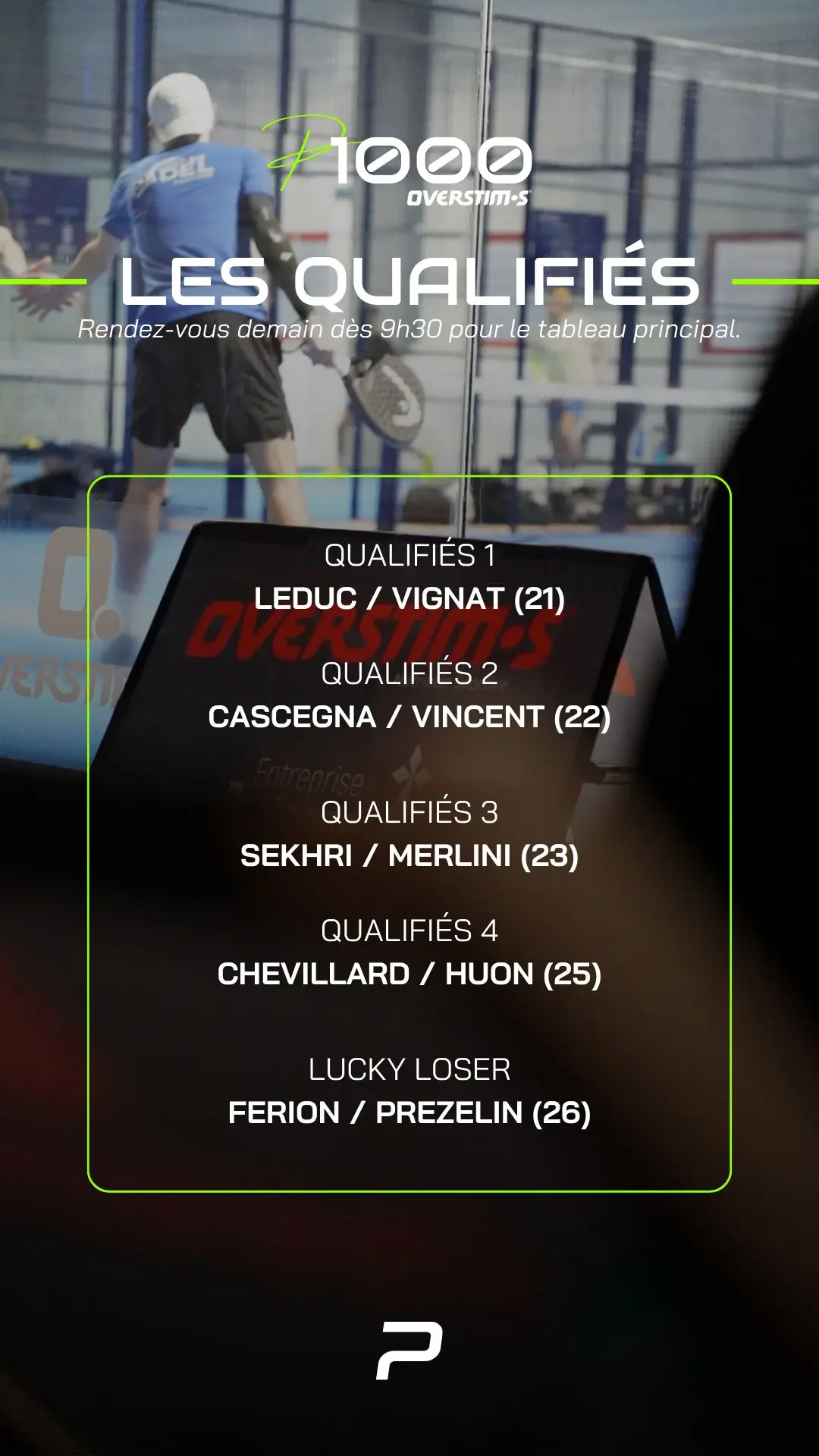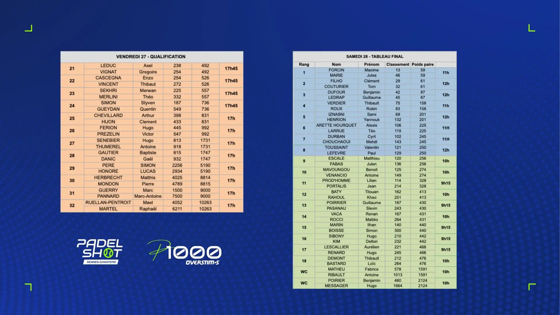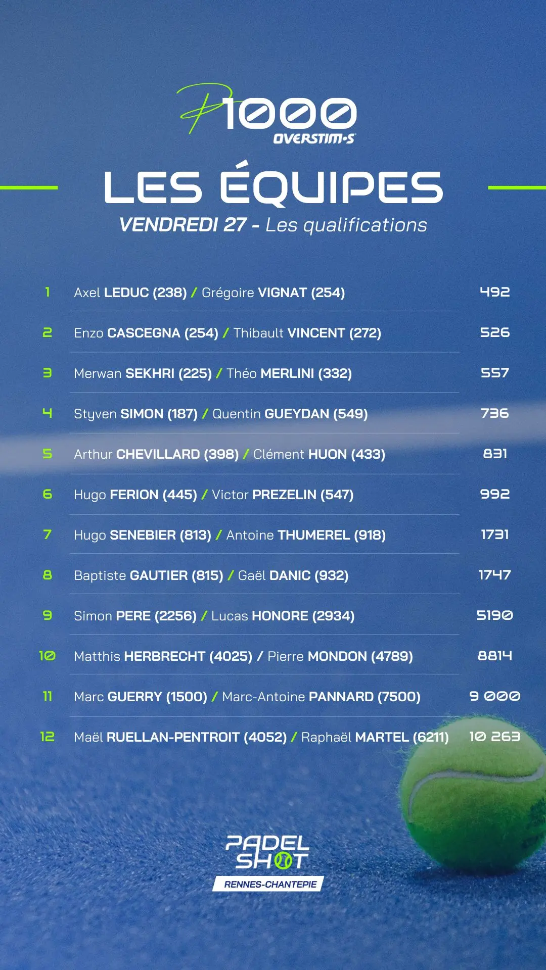 Retrouvez ici l’article actualisé tout le week-end avec les dernières informations et résultats du P1000 PadelShot Overstims Rennes-Chantepie à suivre du 27 février au 01 mars 2026 sur Padel Mag TV.