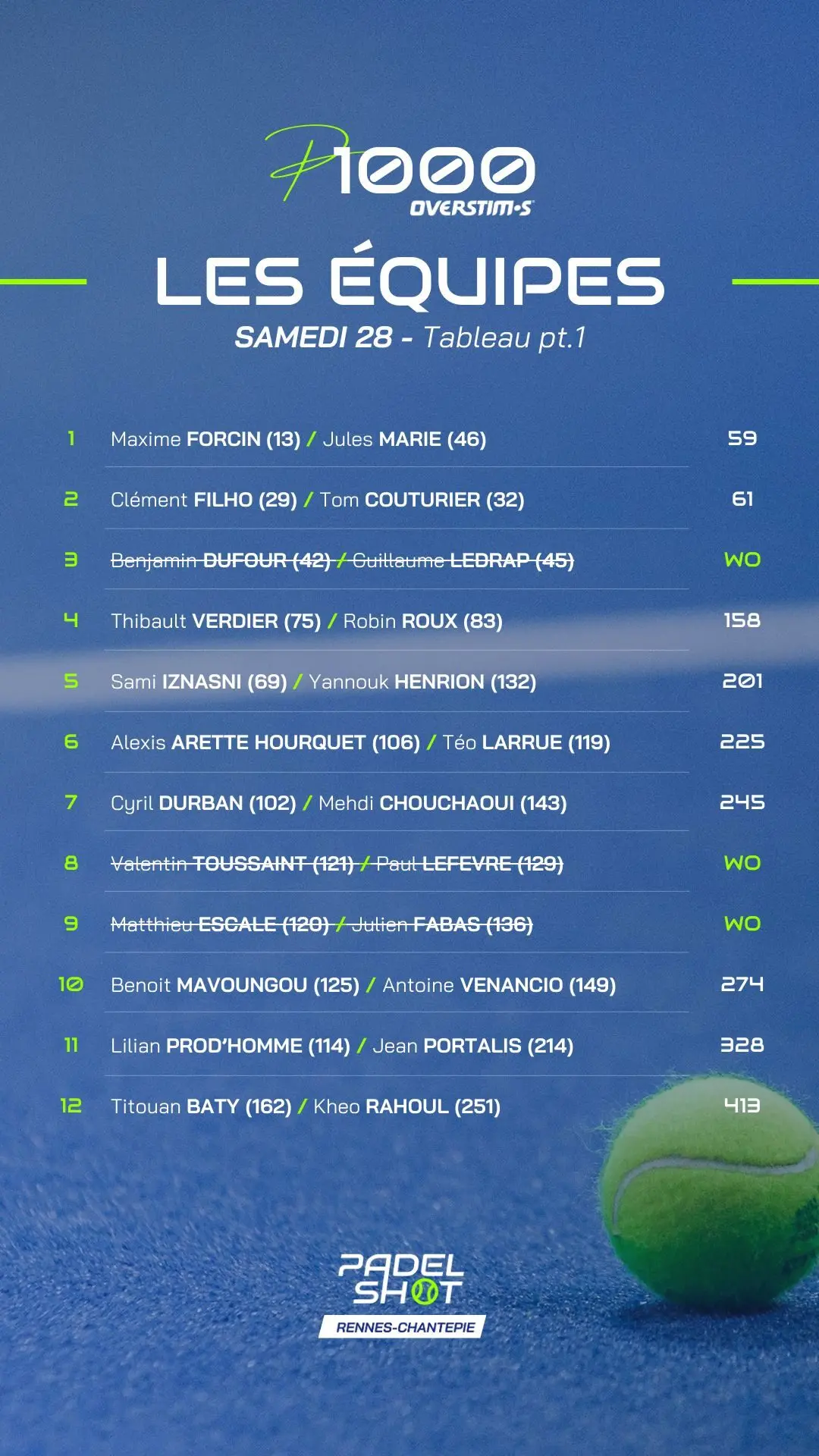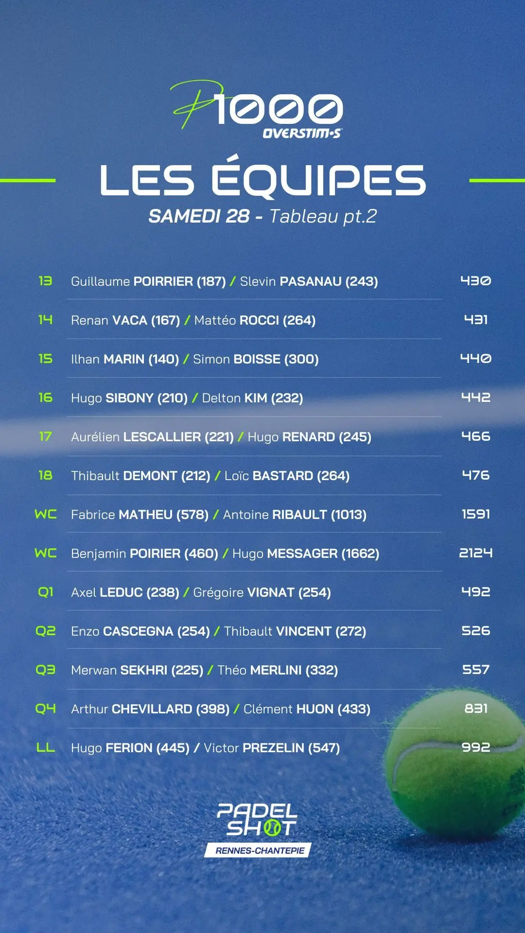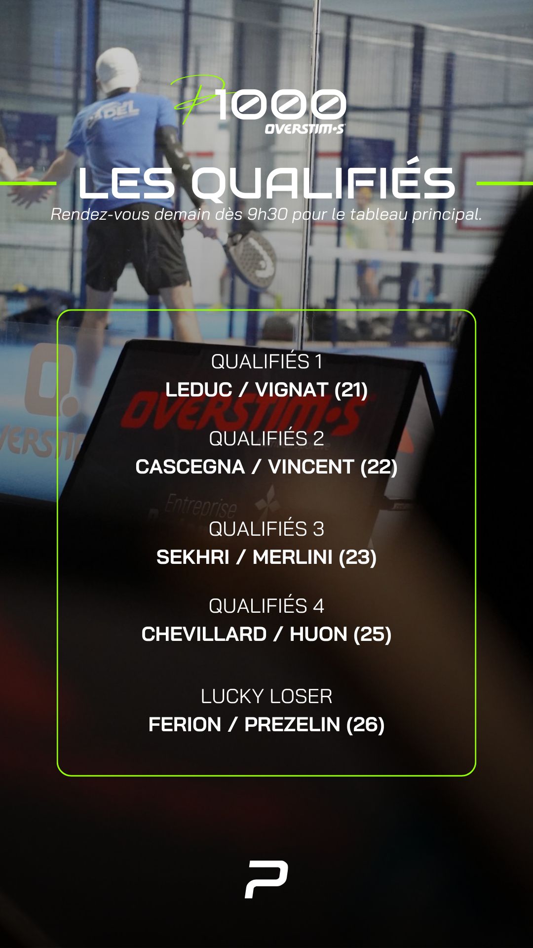 Retrouvez ici l’article actualisé tout le week-end avec les dernières informations et résultats du P1000 PadelShot Overstims Rennes-Chantepie à suivre du 27 février au 01 mars 2026 sur Padel Mag TV.