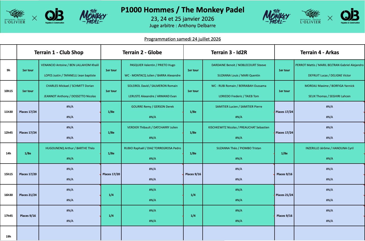 P1500 Padel Campus Arena – Résultats / Programmation / Live