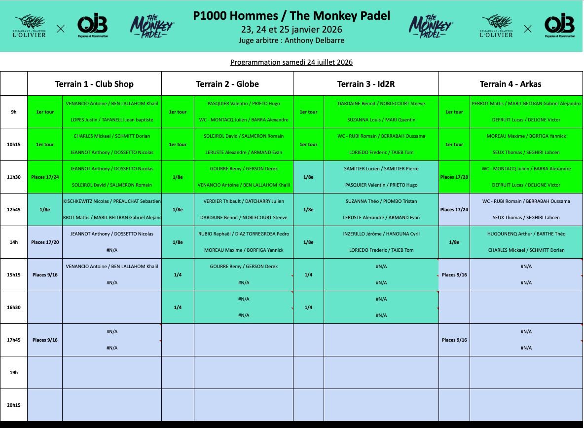 Tout au long du week-end, retrouvez toutes les informations sur le P1000 organisé au club The Monkey Padel. L’un des 5 tournois P1000 du week-end, il accueillera un tableau relevé.