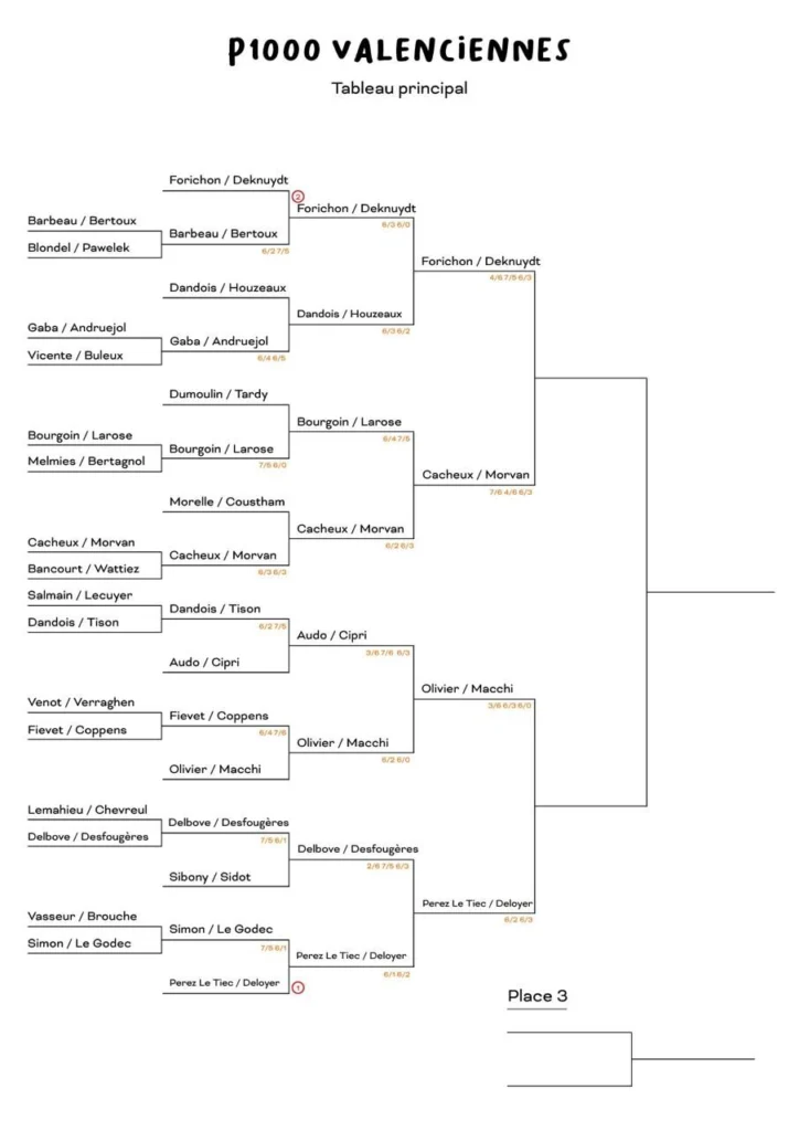 Avec les têtes de série 1 et 2 toujours en course, la hiérarchie est globalement respectée… mais la sortie prématurée de Dumoulin / Tardy a clairement redistribué les cartes dans cette édition valenciennoise.