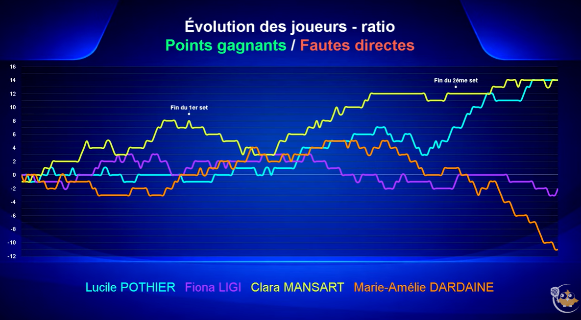 Dans la troisième manche, la différence est nette. Mansart / Dardaine accusent le coup, perdent en précision et en maîtrise, notamment Dardaine qui commet plus de fautes directes. En face, la confiance est totale.