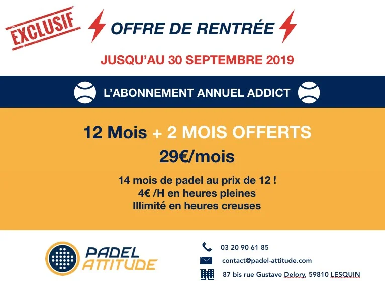 > 14 mois de padel au prix de 12 !