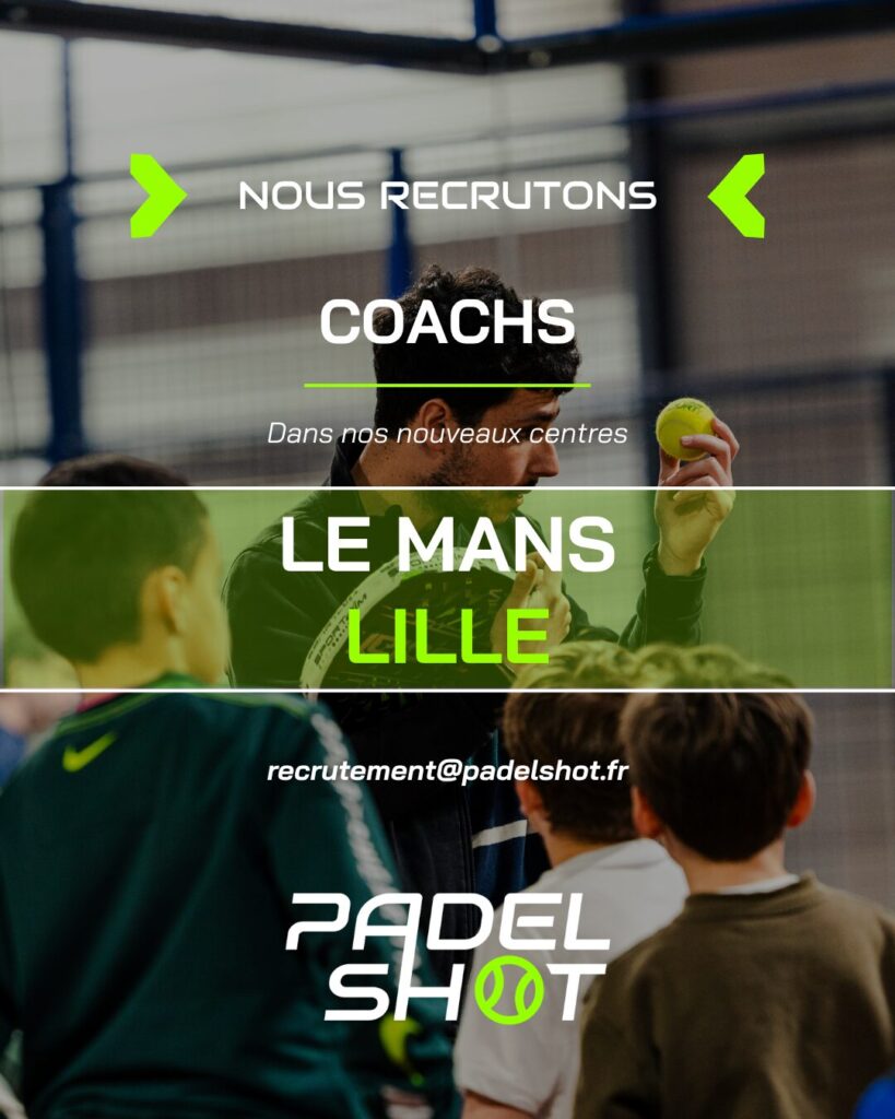 Le réseau recherche actuellement des coachs padel pour ses futurs clubs de Le Mans et de Lille, deux ouvertures attendues dans les prochaines semaines.
