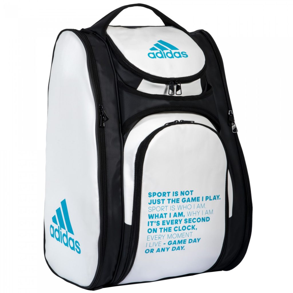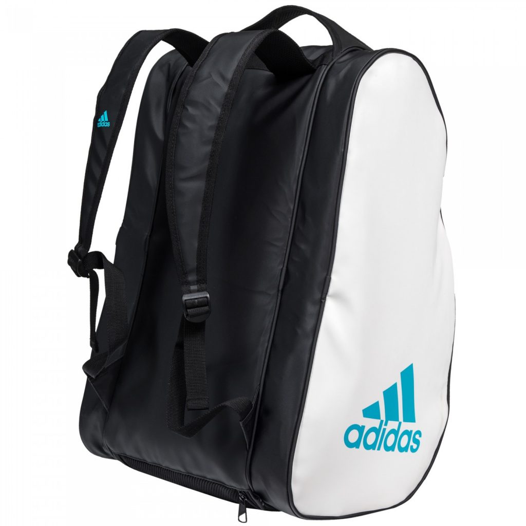 Nous ne parlons pas de nouveautés technologiques dans ce paletero made by Adidas, mais de pure élégance. Réalisé en tissu imperméable, il est blanc avec les coutures et crémaillères de couleur noire. Le modèle présenté, est celui utilisé par Marta Ortega, avec les lettres d´Adidas padel écrites en bleu ciel. Un modèle vraiment bien fini.