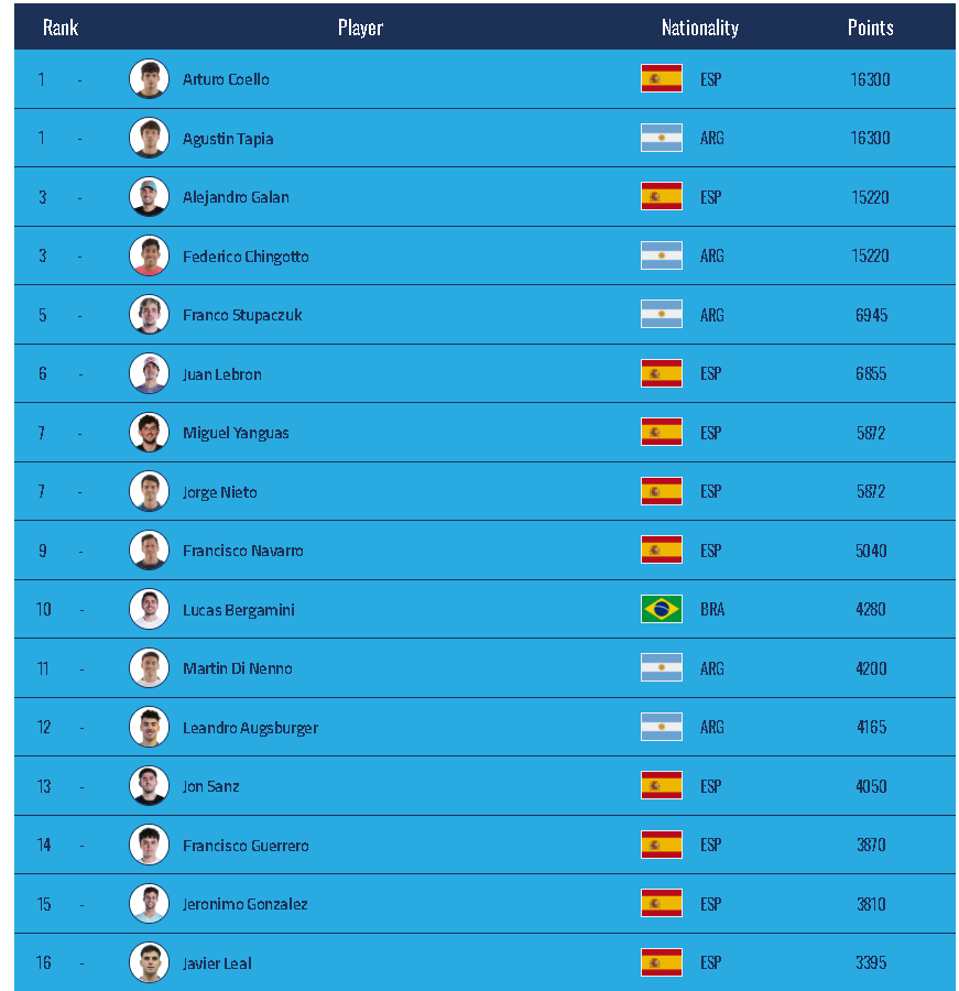 Autre frustration notable, celle de Tolito Aguirre et Gonzalo Alfonso. Anciens piliers du circuit A1 Padel, les deux Argentins terminent respectivement 19ᵉ et 21ᵉ de la Race Premier Padel. Leur fin de saison a montré une progression sensible, mais le retard accumulé lors des premiers mois de compétition s’est avéré trop important pour espérer une qualification aux Finals.