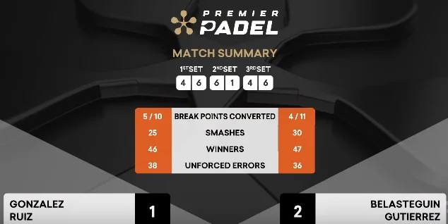 Derrière, la partie est redevenue très équilibrée, avec un véritable bras de fer qui s’est installé, et qui a vu tout le vécu des Argentins faire la différence au meilleur moment. En effet, comme vous pouvez le constater ci-dessous, les stats auront été très équilibrées et c’est bien la gestion des points importants qui a permis à la version 2.0 du duo Sanyo/Bela de se qualifier pour sa première finale.