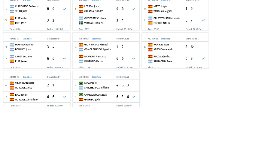 On retiendra bien sûr la “belle” remportée par Bela et Coello face à Nieto/Yanguas (les deux paires étaient à une victoire partout cette saison avant ce match), la grande forme de Di Nenno/Navarro, ou encore la fin de l’aventure des Lucky Losers Ignacio Vilariño et Jose Gonzalez. Demain, de gros chocs nous attendent comme vous pouvez le voir ci-après :