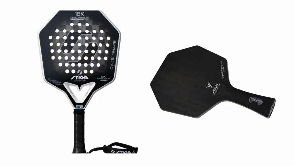 Pour Stiga, c’est presque une habitude finalement, car après l’avoir fait au tennis de table, la marque suédoise propose une pala avec une forme très spéciale, baptisée Cybershape.