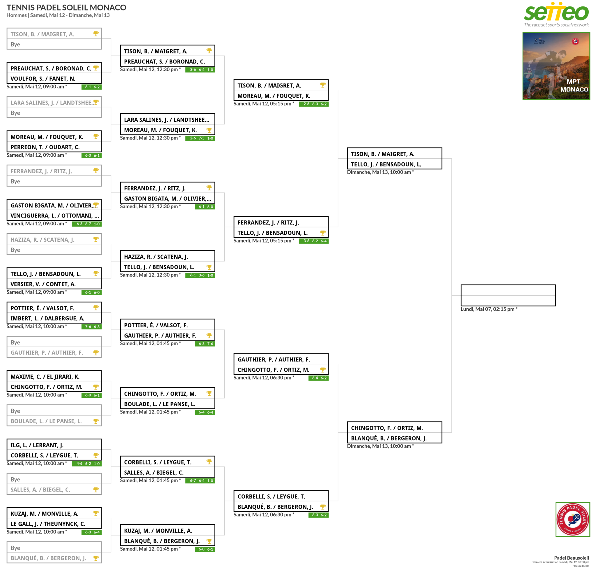Retrouvez tous les résultats dans le tableau du tournoi ci-dessous :