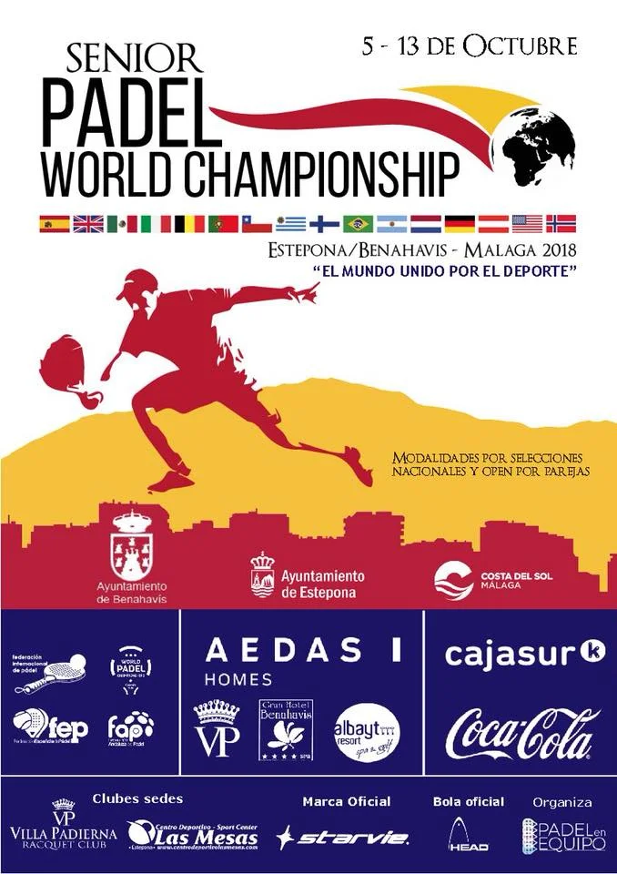 Les championnats du monde de padel senior auront lieu à Malaga du 5 au 13 octobre 2018.