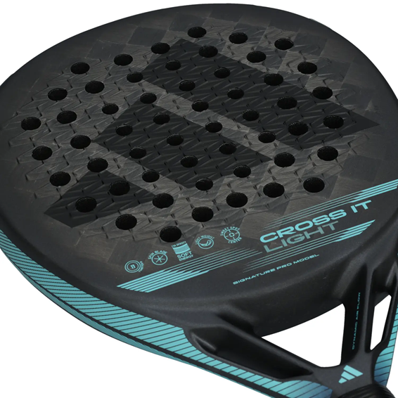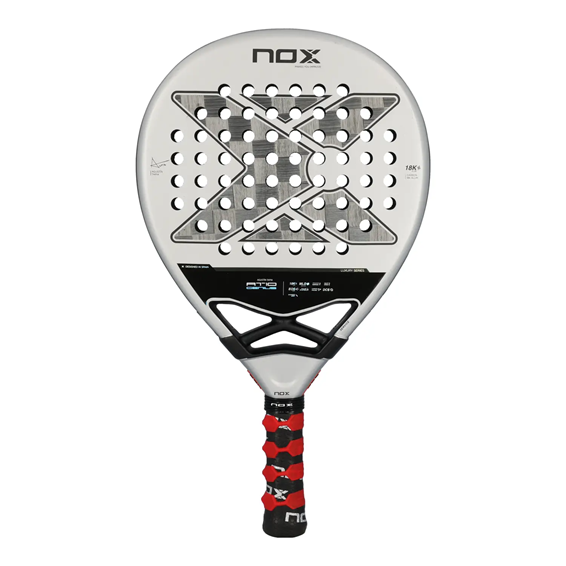Conçue en collaboration avec Agustín Tapia, Nox AT10 Genius 18K 2024 combine contrôle et puissance. Son format en goutte d’eau et son équilibre moyen en font une raquette polyvalente. Les faces en carbone aluminisé 18K et le noyau en EVA multicouche assurent un toucher ferme et une bonne sortie de balle.