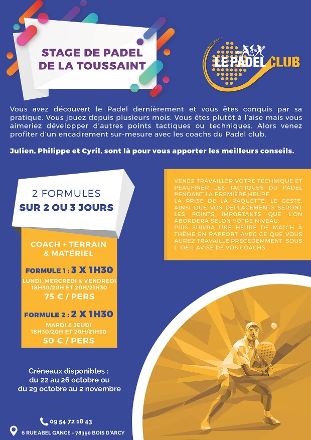 Les Stages de Padel reviennent pendant les vacances de la Toussaint au Padel Club de Bois d’Arcy.