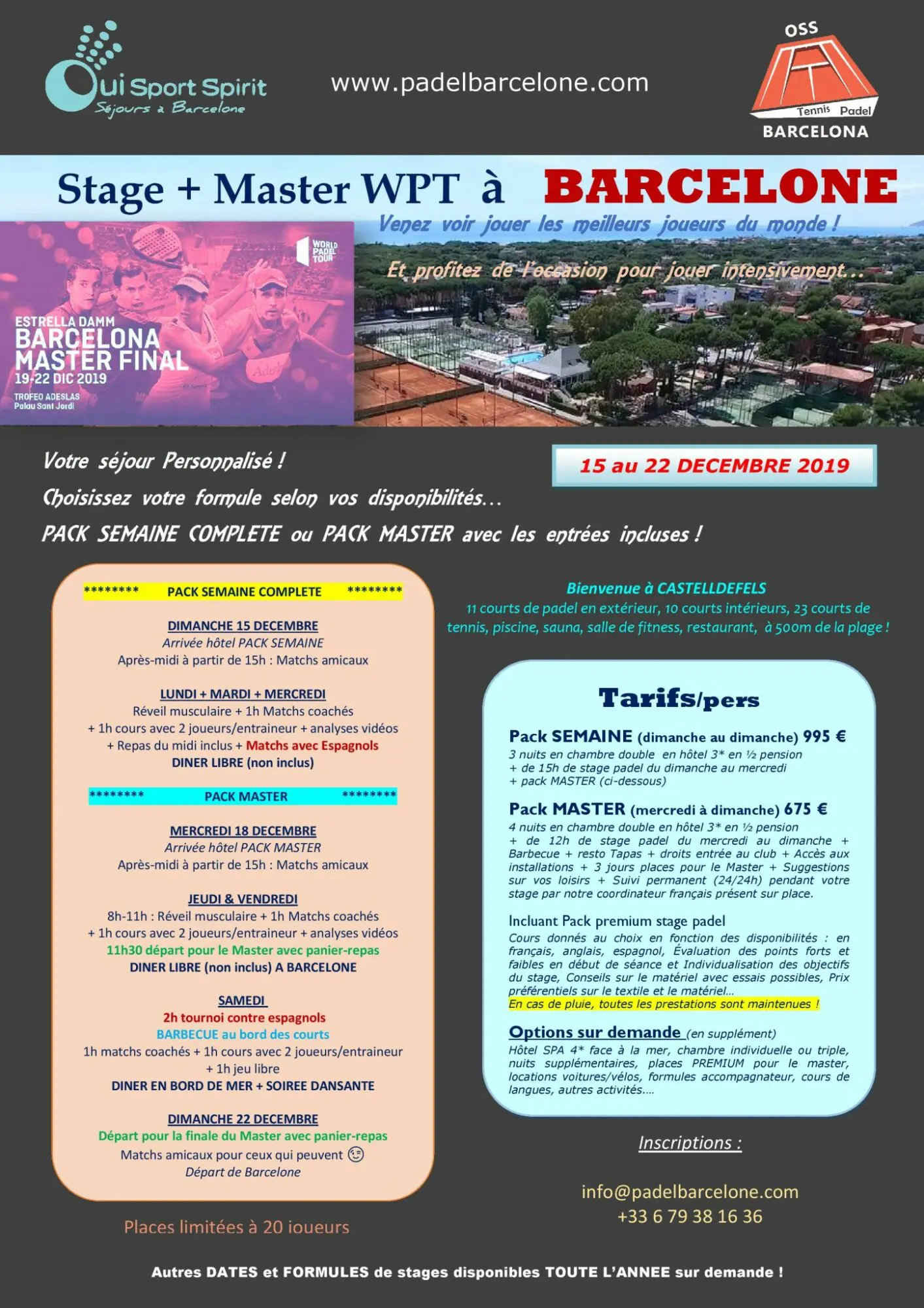 - Du 15 au 22 DECEMBRE 2019 : Stage + Master WPT à Barcelone
