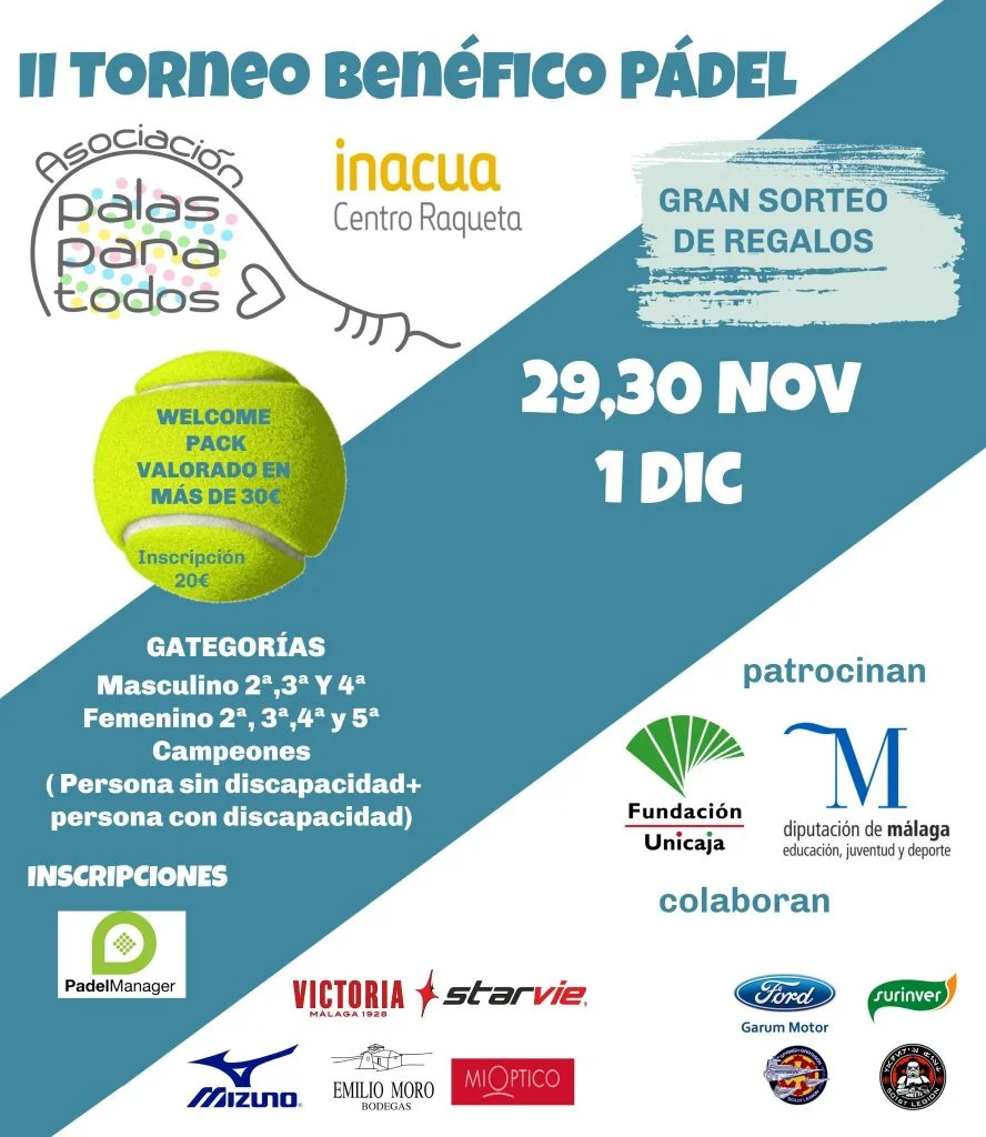 Depuis 2012, la marque espagnole a décidé de proposer “une pala pour tous”. Cet élan, présidé par Carolina Navarro, aura lieu cette année dans le club Inuácua de Malaga. Le but est de permettre à des personnes handicapées, porteuses du syndrôme de Down, d´autisme ou de paralysie cérébrale, de partager la piste avec une personne valide pour participer à un tournoi de padel.