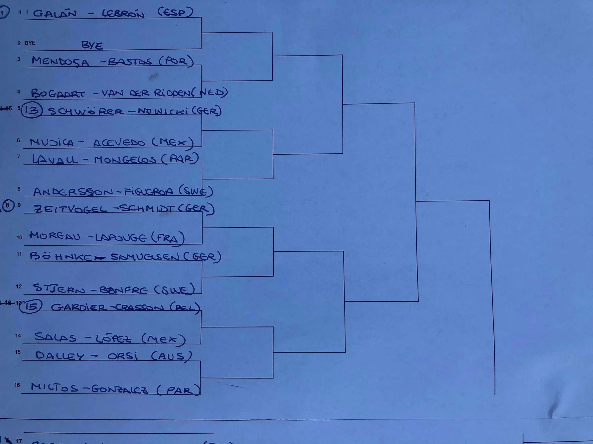 Moreau / Lapouge affrontera dans son premier tour une équipe allemande. Il s’agira de la 8e tête de série. Sur le papier, nos français pourraient bien créer la surprise. Dans cette partie de tableau, aucune tête de série espagnole, argentine ou brésilienne. Et si elle s’offrait un quart face à Lebron / Galan ?