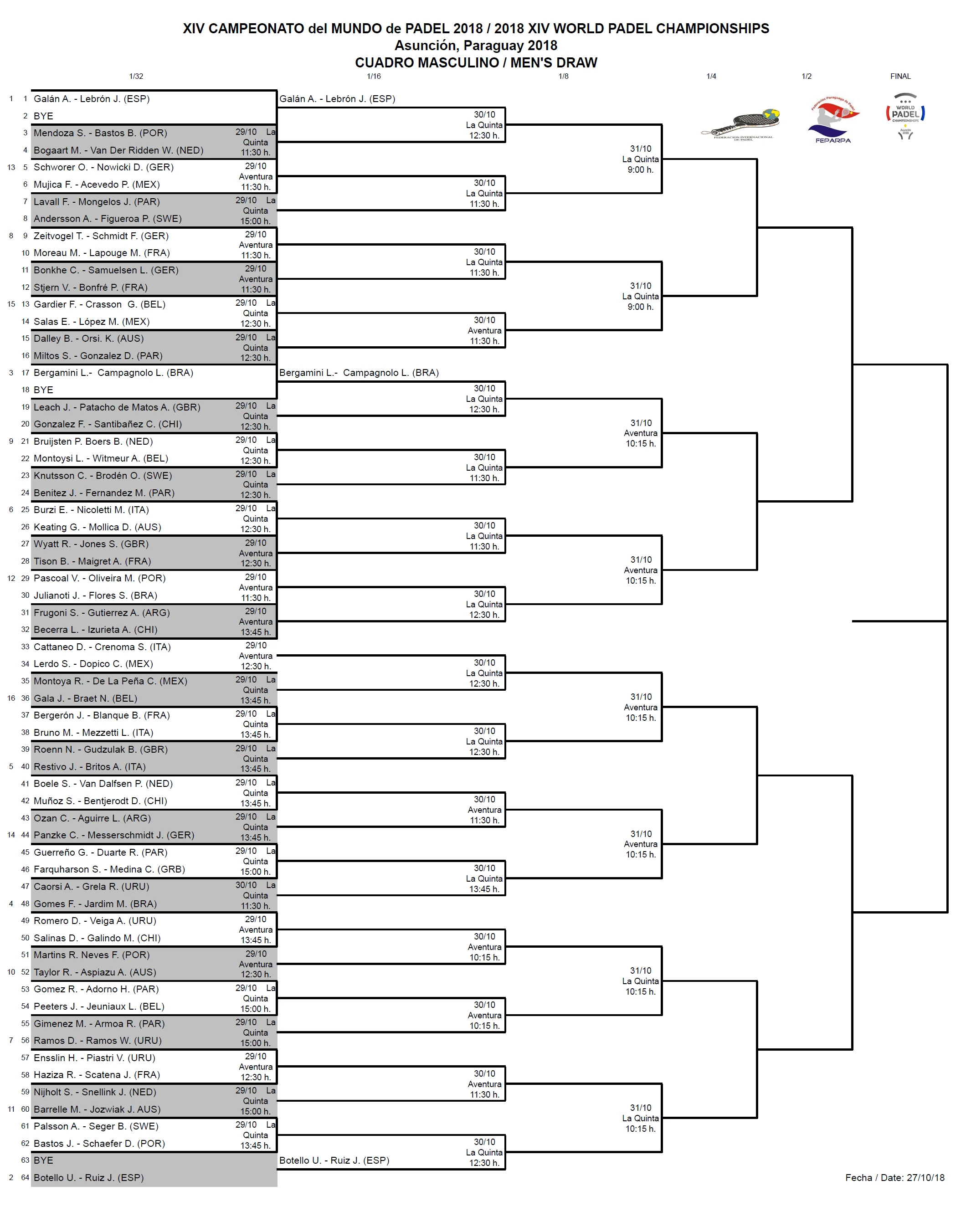 Retrouvez les tableaux et horaires du mondial de padel au Paraguay.