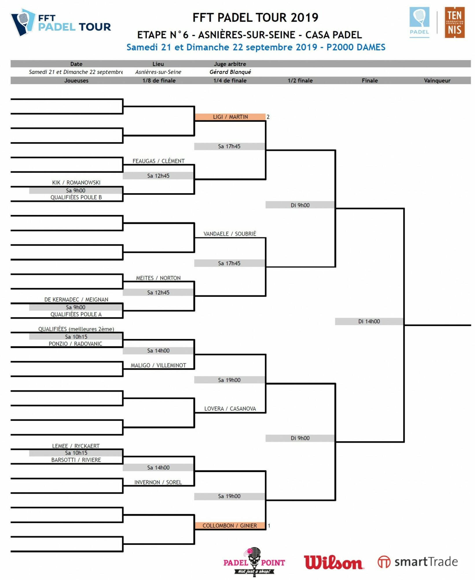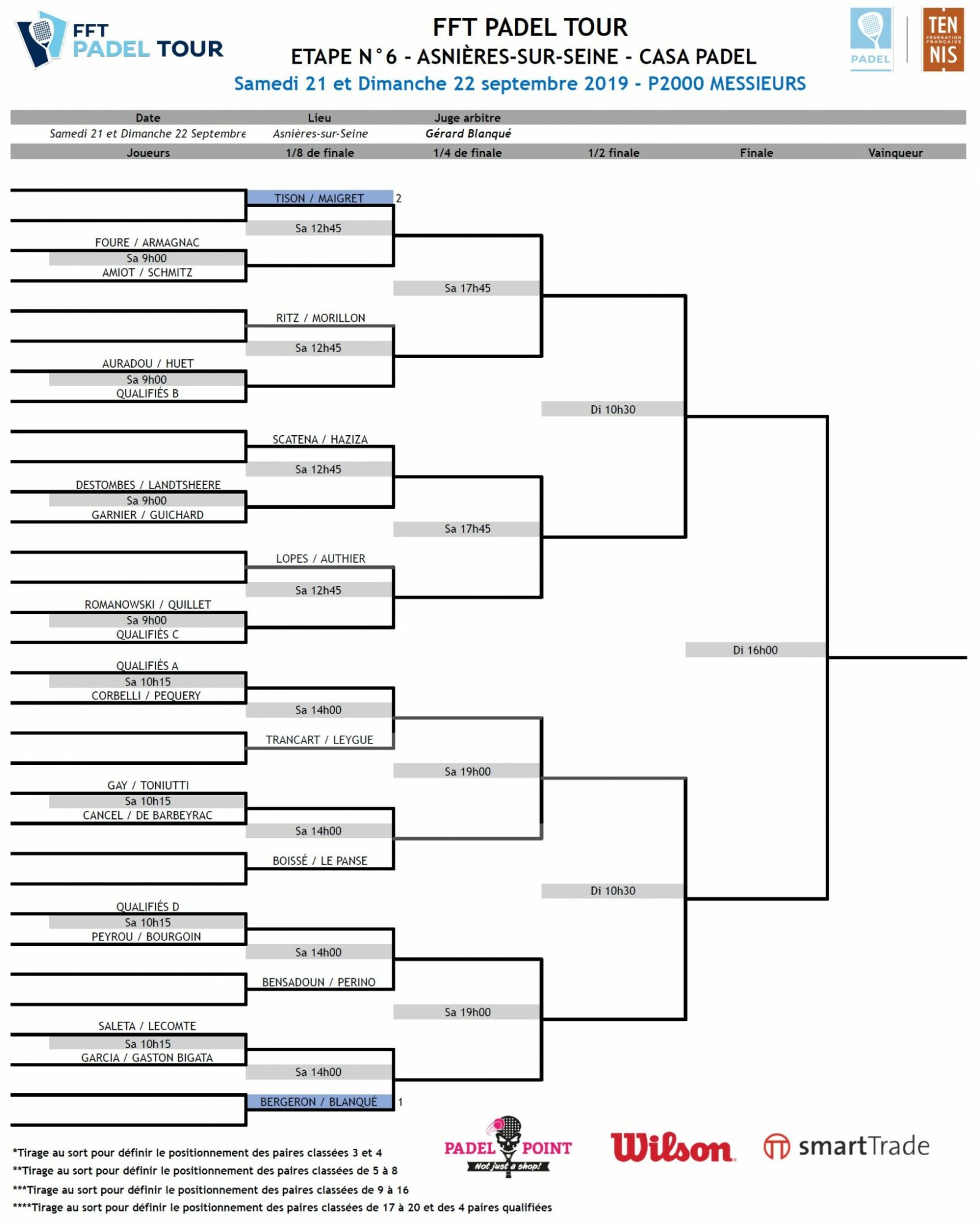 Les tableaux principaux dames et messieurs du FFT PADEL TOUR d’Asnières-sur-Seine sont tombés ! De gros matchs en perspective dès demain matin avec une bonne partie des meilleures paires présentes avant les championnats de France de padel de la semaine prochaine à Casa Padel.