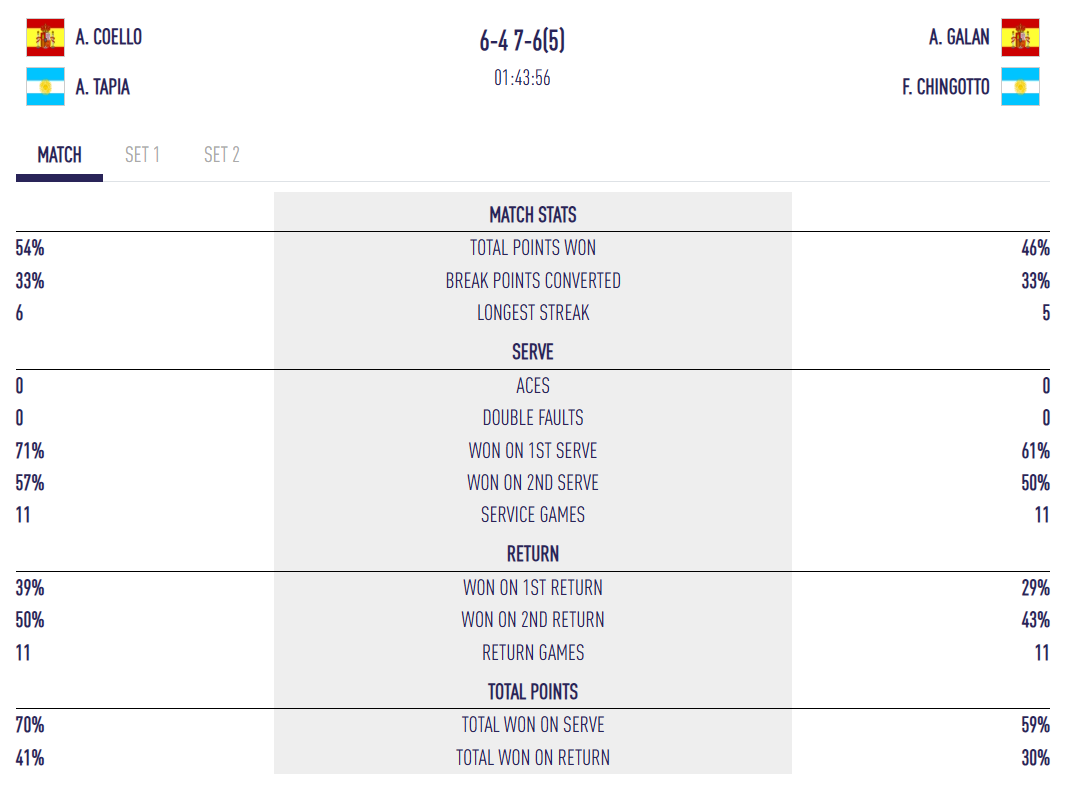 Score final : 6/4 7/6, après 1h43 d’un match très dense.